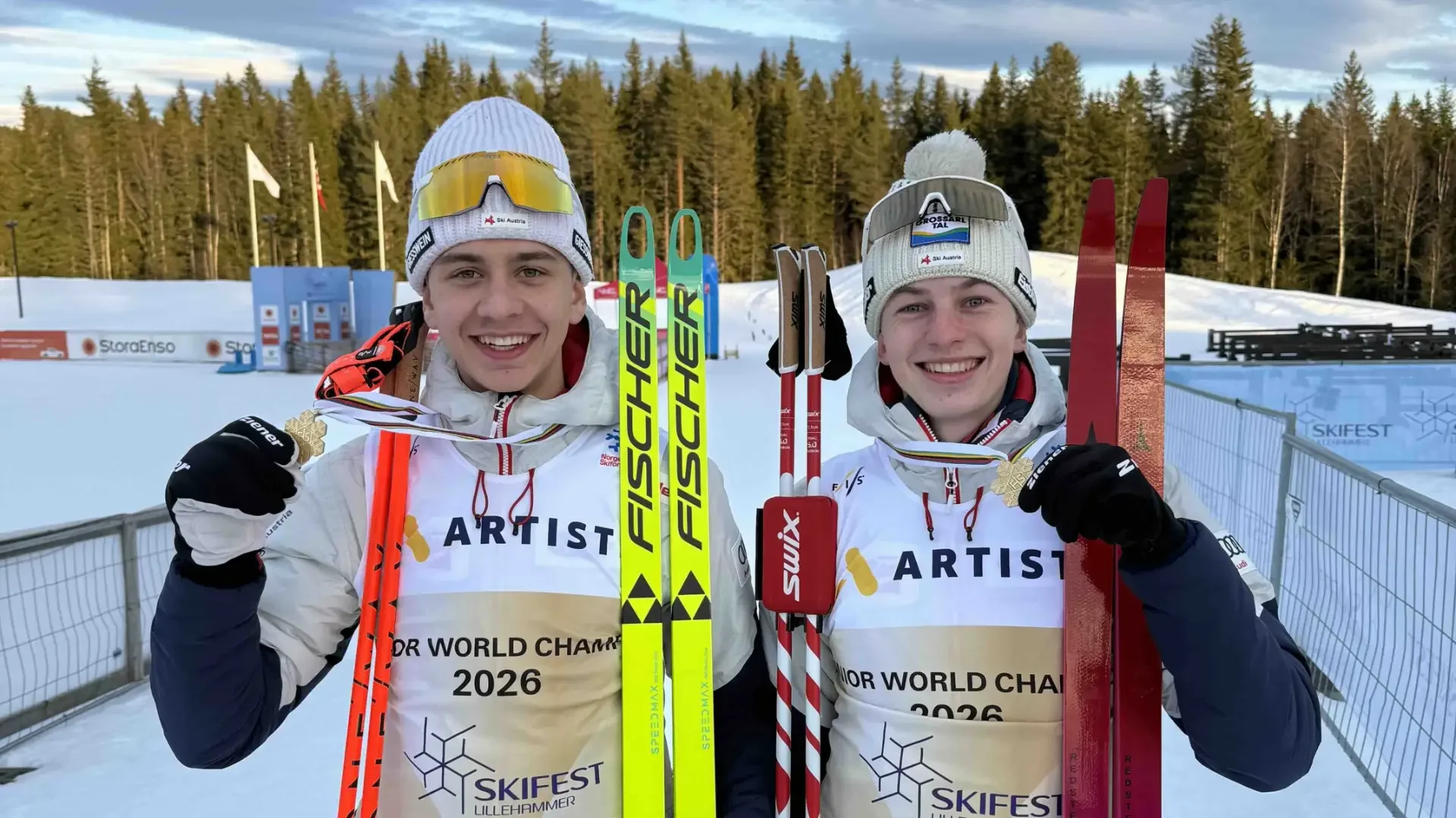Sensationeller Erfolg für unseren David Thür (links im Bild) bei der Junioren WM in Lillehammer: Gold im Teamsprint zusammen mit Andreas Gfrerer!